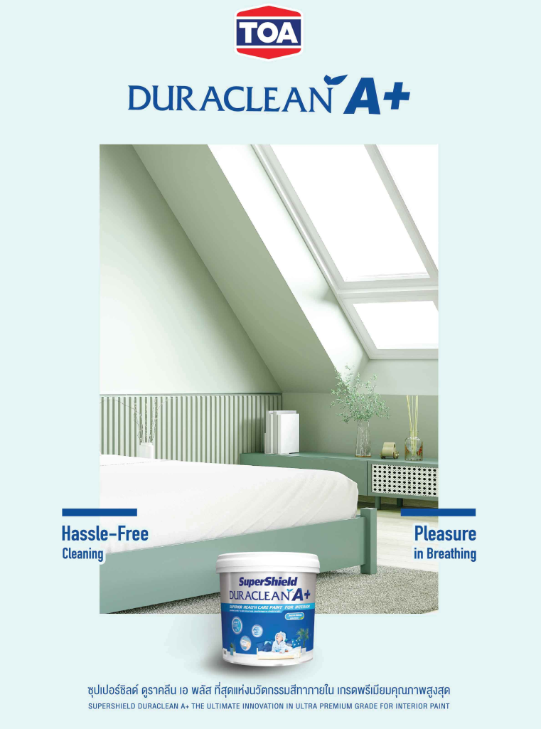 ที่สุดแห่งนวัตกรรมสีทาภายในใส่ใจเพื่อสุขภาพ เช็ดล้างทำความสะอาดได้ปลอดภัย ไร้แบคทีเรีย ไร้กลิ่น ทั้งยังสร้างอากาศบริสุทธิ์ ขจัดสารพิษอันตรายเพื่อคุณภาพชีวิตที่ดีกว่าของทุกคนในครอบครัว ใช้วัตถุดิบจากธรรมชาติ ไม่ใช้สาร APEO จึงปลอดภัยสูงสุดต่อผู้อยู่อาศัย และสิ่งแวดล้อม