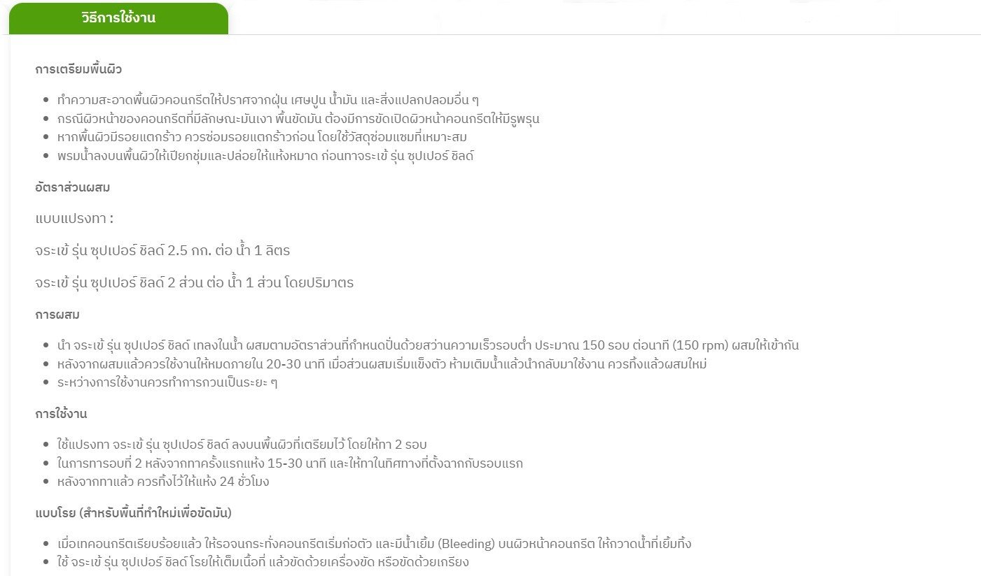 อัตราการใช้: 1-1.5 กก. / ตร.ม. / 2 เที่ยว