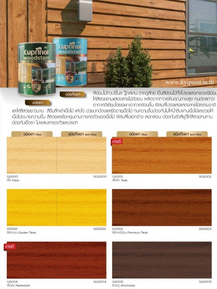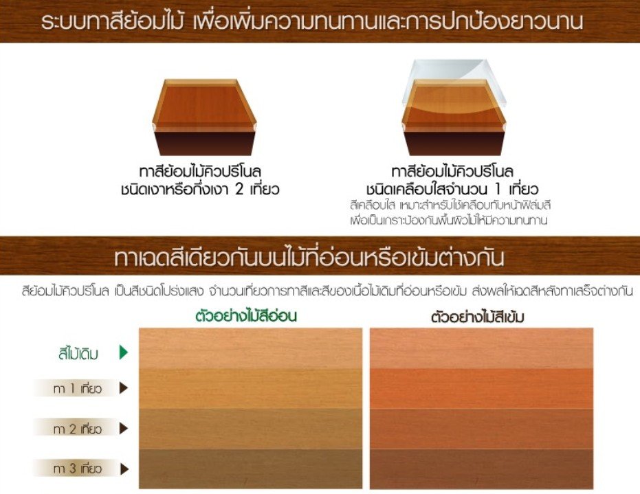 เป็นสีย้อมไม้กึ่งโปร่งแสงให้สีสวยงามแสดงลายไม้ชัดเจน เหมาะสำหรับงานไม้ที่ต้องการโชว์ความสวยงามของลายไม้ธรรมชาติ สามารถใช้ทาทั้งภายนอกและภายใน ไม้เนื้ออ่อนและไม้เนื้อแข็ง เช่น บ้าน ประตู วงกบ หน้าต่าง ผนัง ระเบียง สามารถใช้ย้อมไม้ให้เป็นสีไม้ธรรมชาติโดยทา 2-3 เที่ยวโดยไม่ต้องทารองพื้น